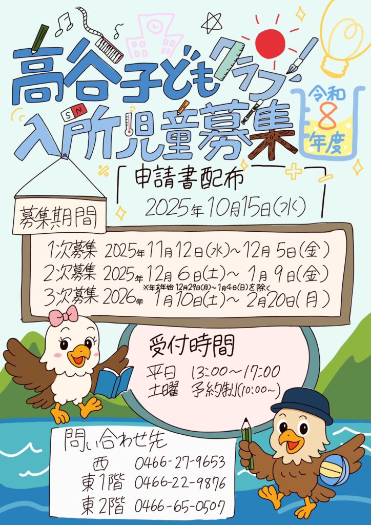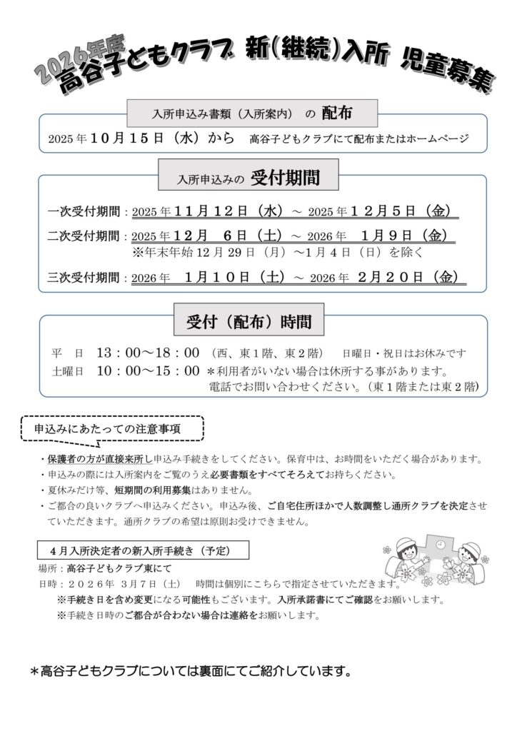 - 申込みの際には10月より配布の入所案内をご覧のうえ必要書類をすべてそろえてお持ちください。